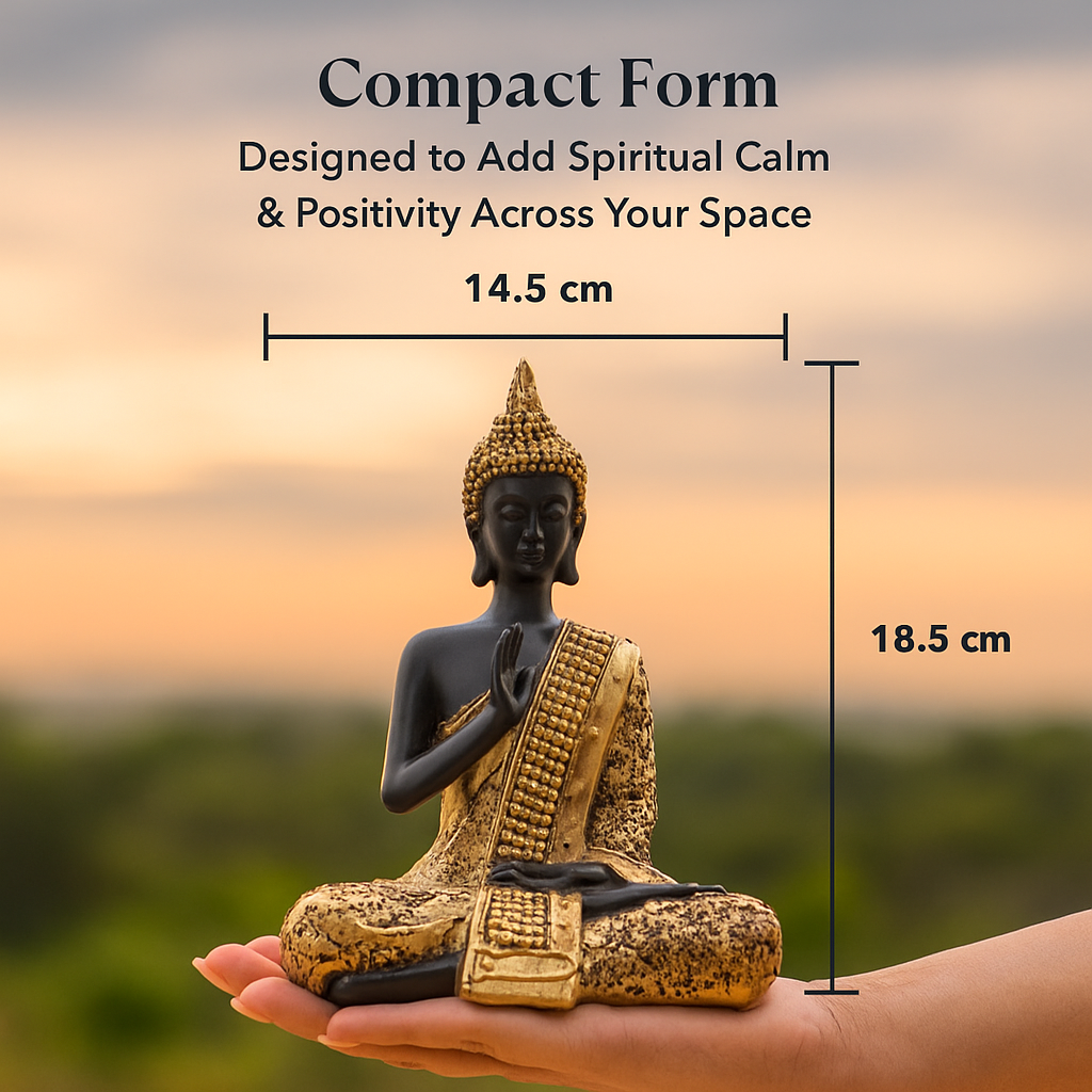 Bring peace, clarity, and mindfulness into your space with this beautifully crafted Buddha idol in a golden robe. Perfect for your pooja room, work desk, or meditation corner.